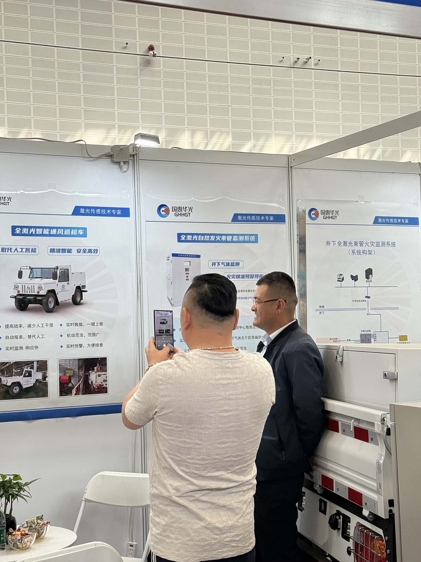 本次展會,國惠華光展出了“全激光智能通風巡檢車”“全激光自然發火束管監測系統兩大核心產品,吸引眾多業內伙伴前來咨詢探討,客戶們對我司的產品表現出了濃厚的興趣,并給予高度的評價,現場熱鬧非凡。
